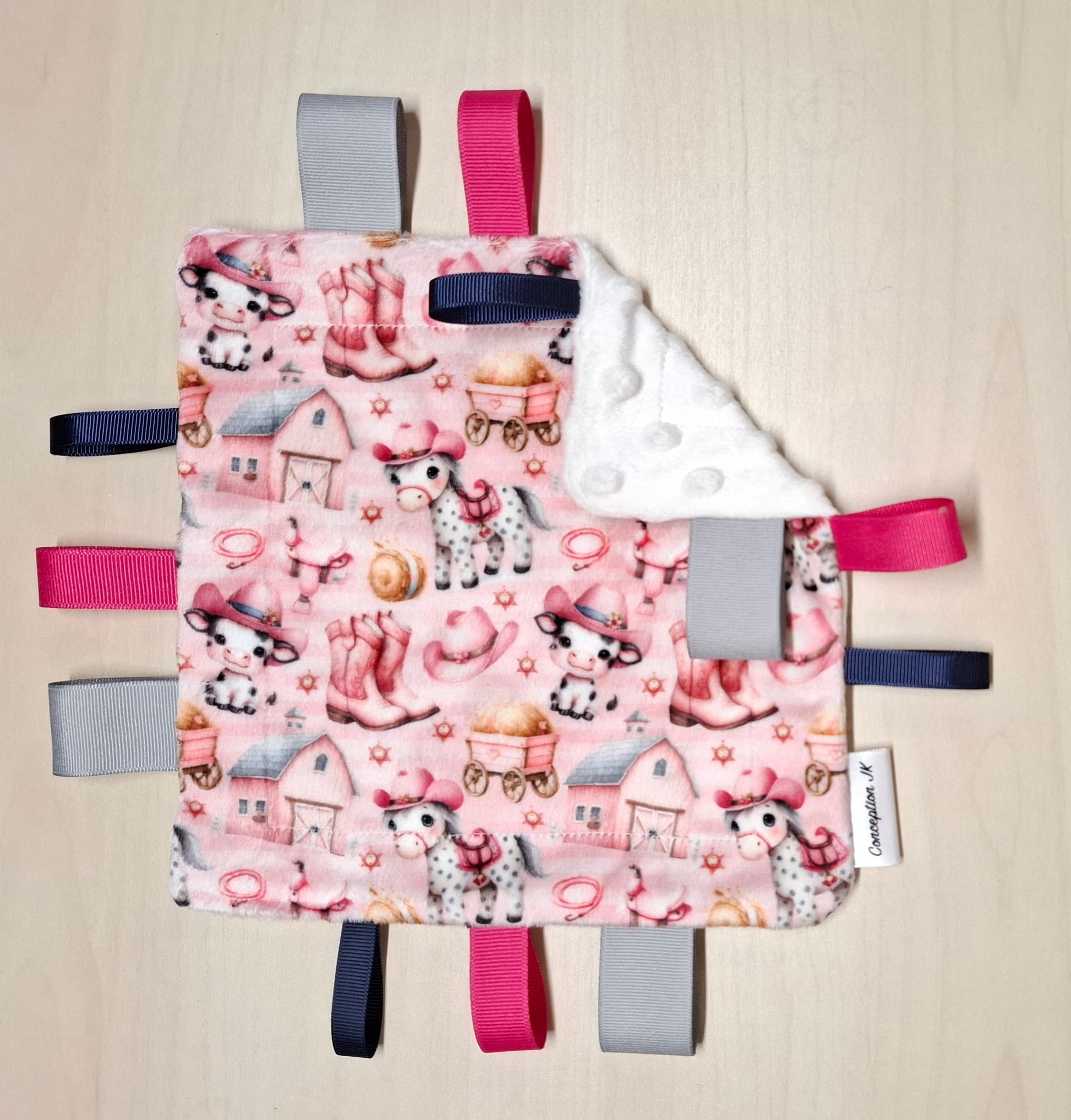 Nos doudous étiquettes sont confectionnées avec du minky, qui est d’une grande douceur ! De plus, nos motifs seront toujours imprimés localement, tout près de chez vous.