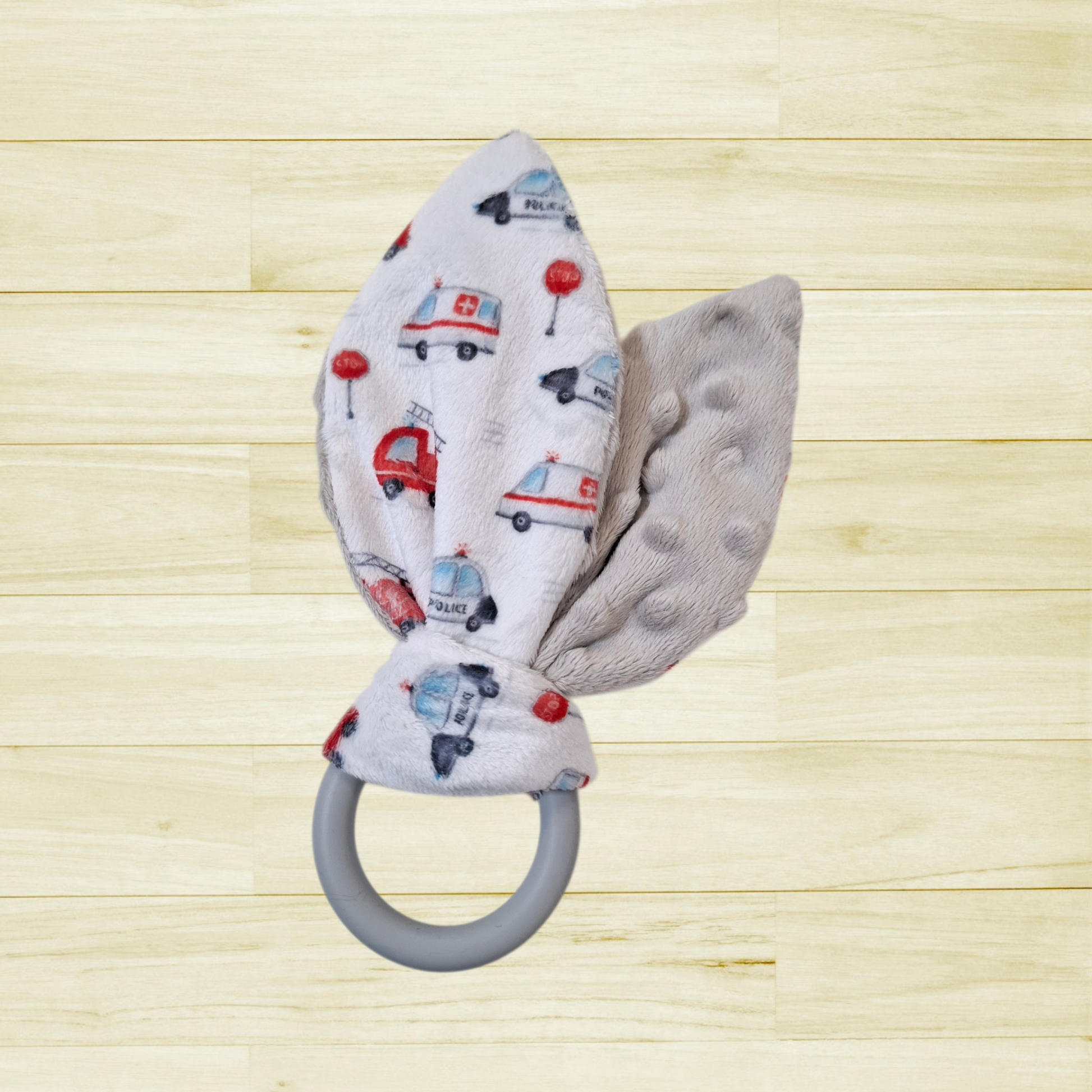 Concernant l’anneau de dentition qui est de qualité alimentaire, nous choisissons avec soin l’agencement de l’anneau au motif. Il y aura toujours de petites variantes dans les couleurs, ce qui fait son caractère unique.