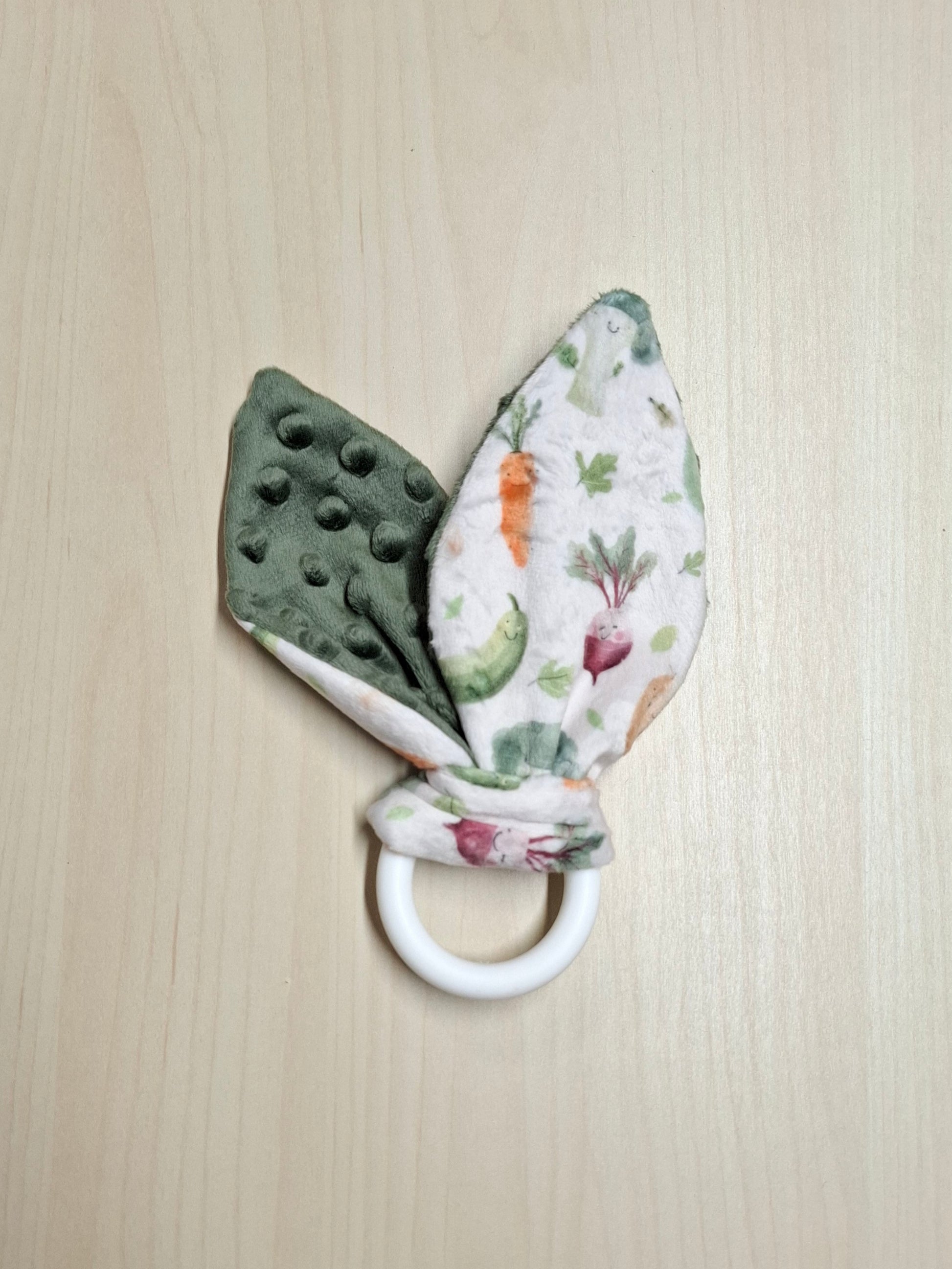 Concernant l’anneau de dentition qui est de qualité alimentaire, nous choisissons avec soin l’agencement de l’anneau au motif. Il y aura toujours de petites variantes dans les couleurs, ce qui fait son caractère unique.